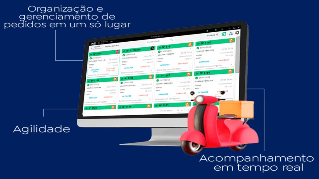Gerenciar pedidos delivery vindos de integrações atualmente ativas, como iFood, Anota aí, Delivery Direto, Rappi, Neemo, Accon, Alloy e Aiqfome.