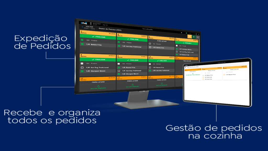 Monitoramento e organização de pedidos que serão direcionados à produção do estabelecimento. O aplicativo recebe pedidos do balcão, mesas e comandas, Delivery, integração Delivery (exceto KDS Android), Autoatendimento, PDV Android e Cardápio Digital.