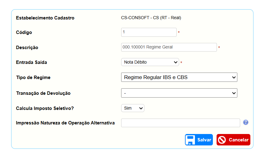 – Classificação Tributária: “1- Situações tributadas integralmente pelo IBS e CBS”;